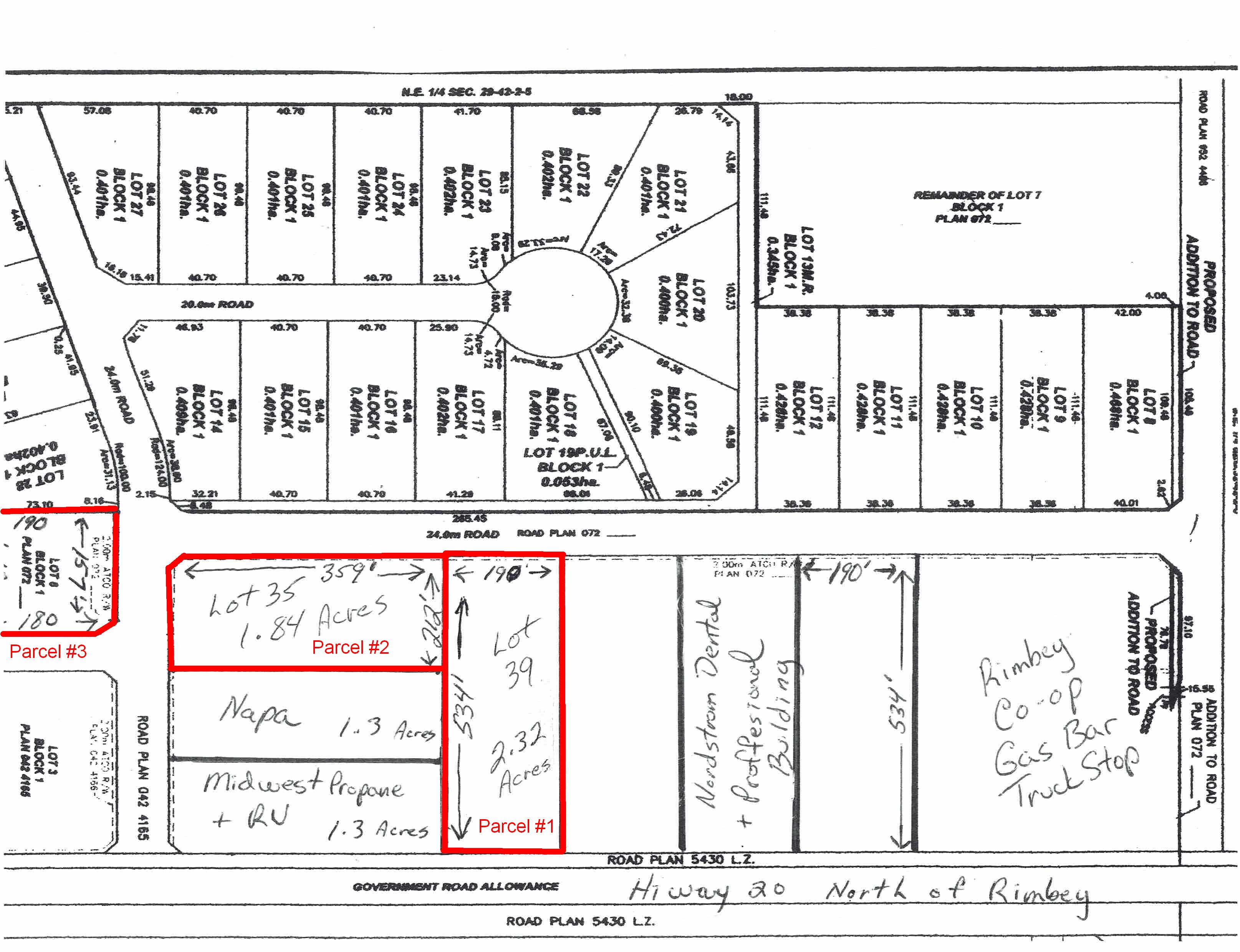 Selling Plan 1222867, Block 1, Lot 39 Being 2.32 Acres M/L Located on the  North End of Rimbey with Hwy #53 Frontage & Paved Streets.  Service at Property Line.